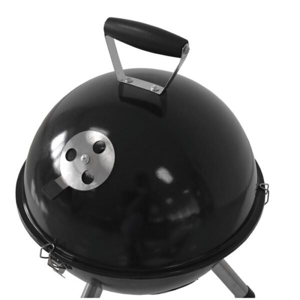 Built for durability and performance, this BBQ features a powder-coated black enamel bowl and lid, stainless steel legs, and air vents to ensure optimal airflow and temperature control. The chrome cooking grill provides a generous 325mm cooking surface, while the Bakelite handle allows safe handling even when hot.